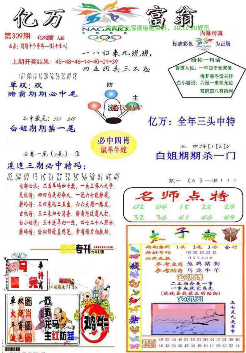 | 309期:绝杀二尾【1尾+3尾】开:鼠06中 |